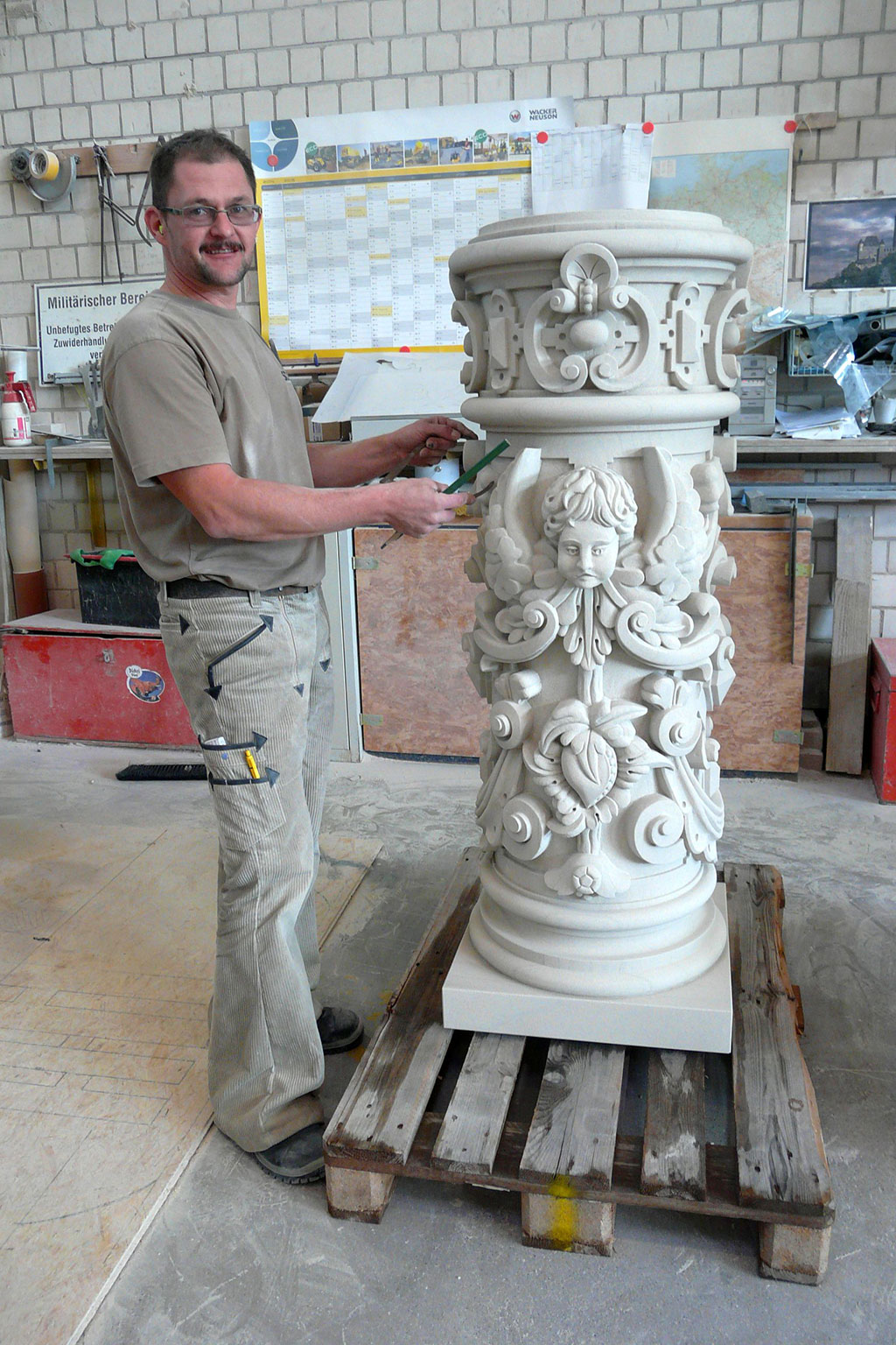Für die Feinheiten jedoch braucht man das Gefühl der menschlichen Hand - vor allem bei der Restaurierung von Ornamenten und Profilen, die u.a. durch Umwelteinflüsse zerstört wurden. Steinmetz und Steinbildhauer/-innen tragen wesentlich zur Erhaltung wertvoller Kulturdenkmäler bei.