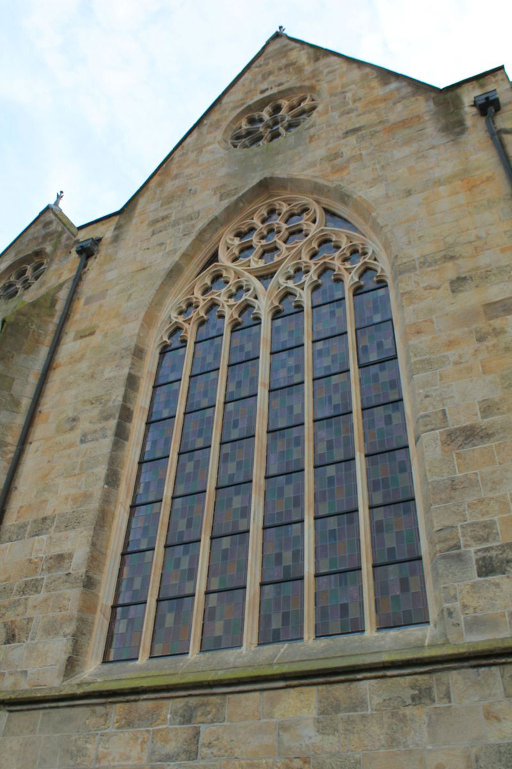 Fassadensanierung BA. I Turm und BA. II Langhaus und Chor. Instandsetzung der Außenanlagen, Naturstein- und Restaurierungsarbeiten, Betoninstandsetzung, Sicherungsmaßnahmen