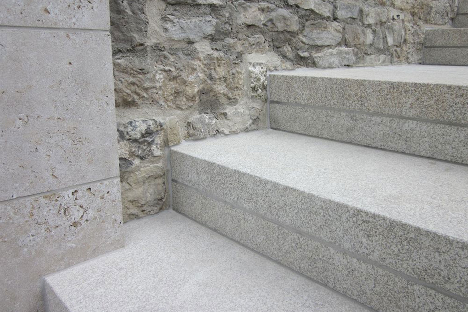 Erstellung der Ausführungsplanung: Neubau der Treppenanlage aus Naturstein auf Betonfertigteilen, Natursteinarbeiten im Neubaubereich der Treppenanlage, Natursteinsanierung der angrenzenden Stadtmauer und Bastion